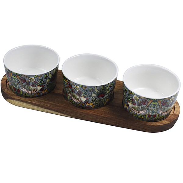 William Morris Strawberry Thief 3 Bowl Snack Tray
